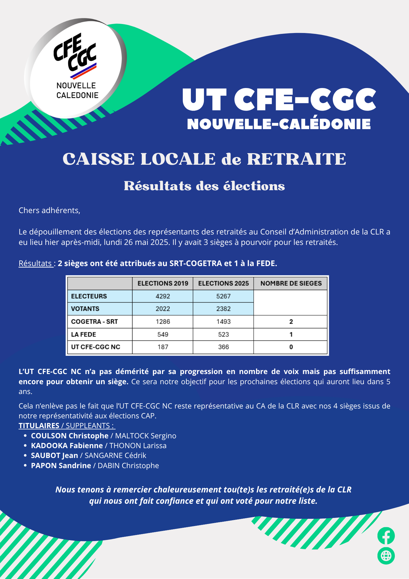 CLR Résultat des élections