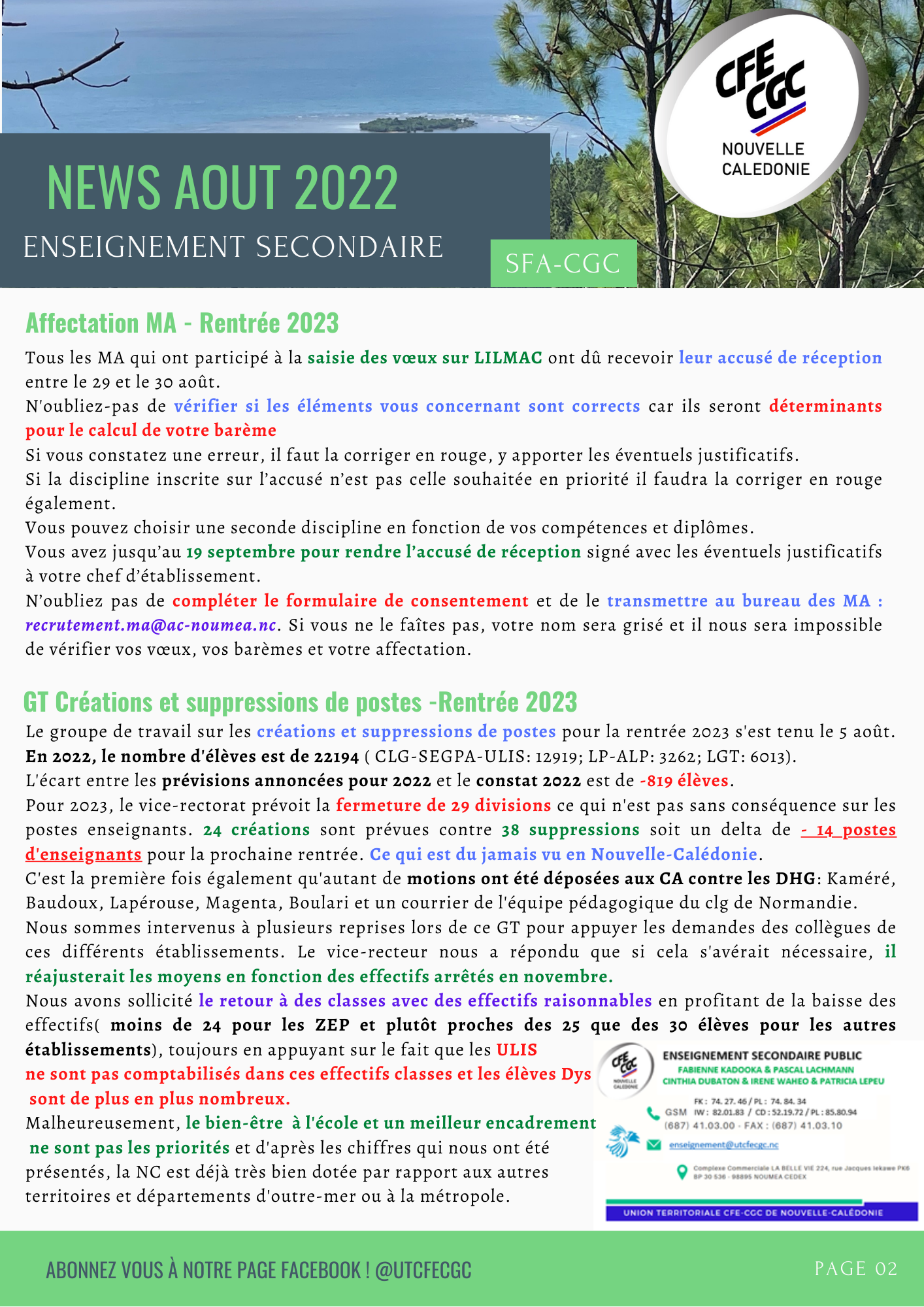 Newsletter Aout 2022 – Enseignement Secondaire
