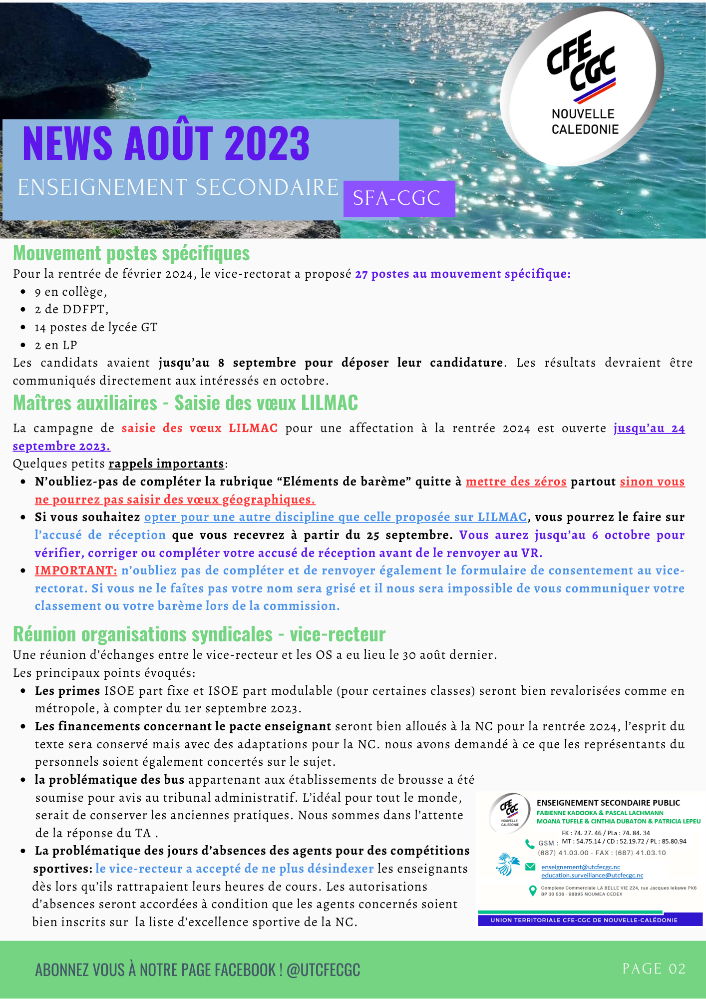 Newsletter Août 2023 – Enseignement Secondaire