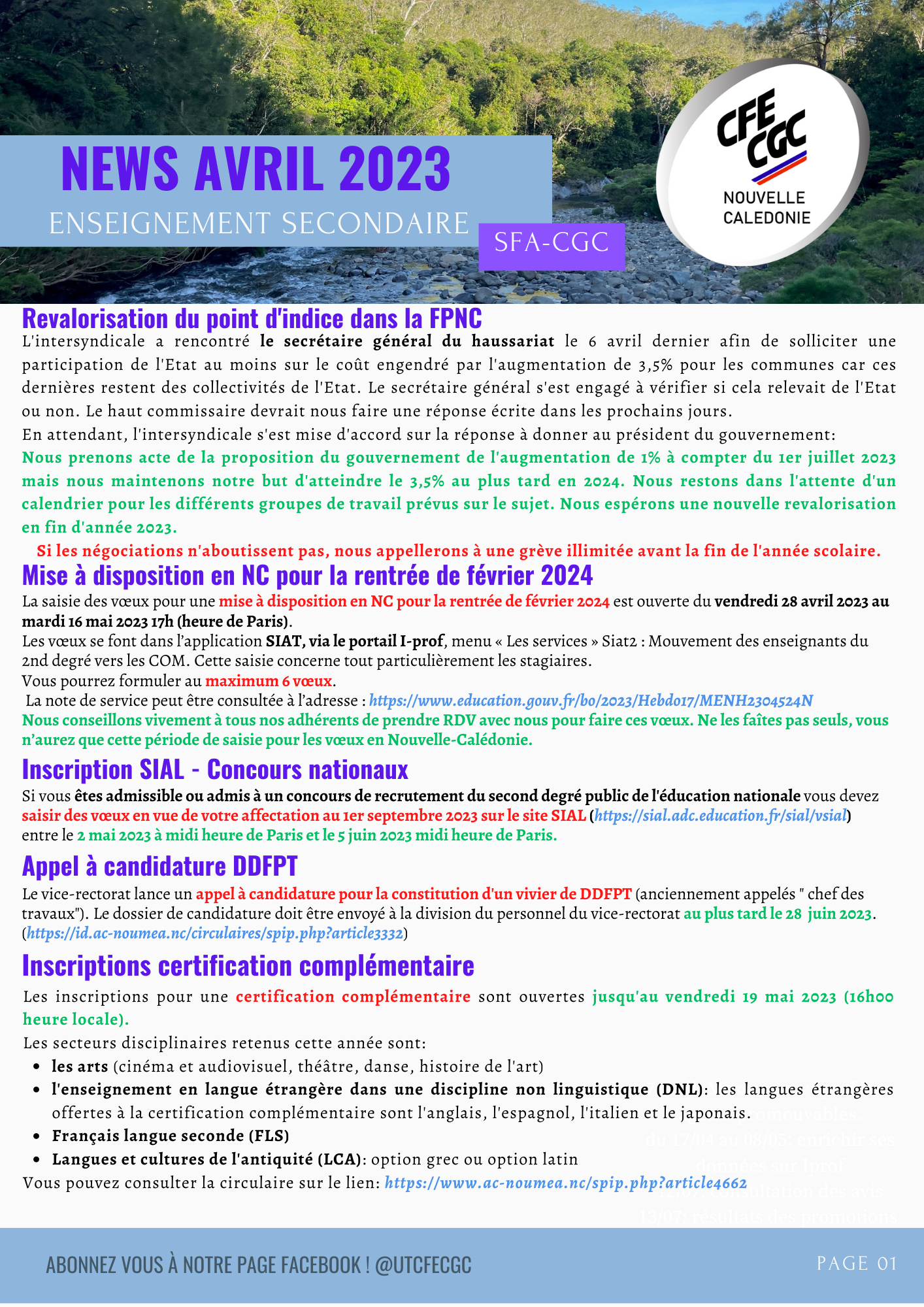 Newsletter Avril 2023 – Enseignement Secondaire