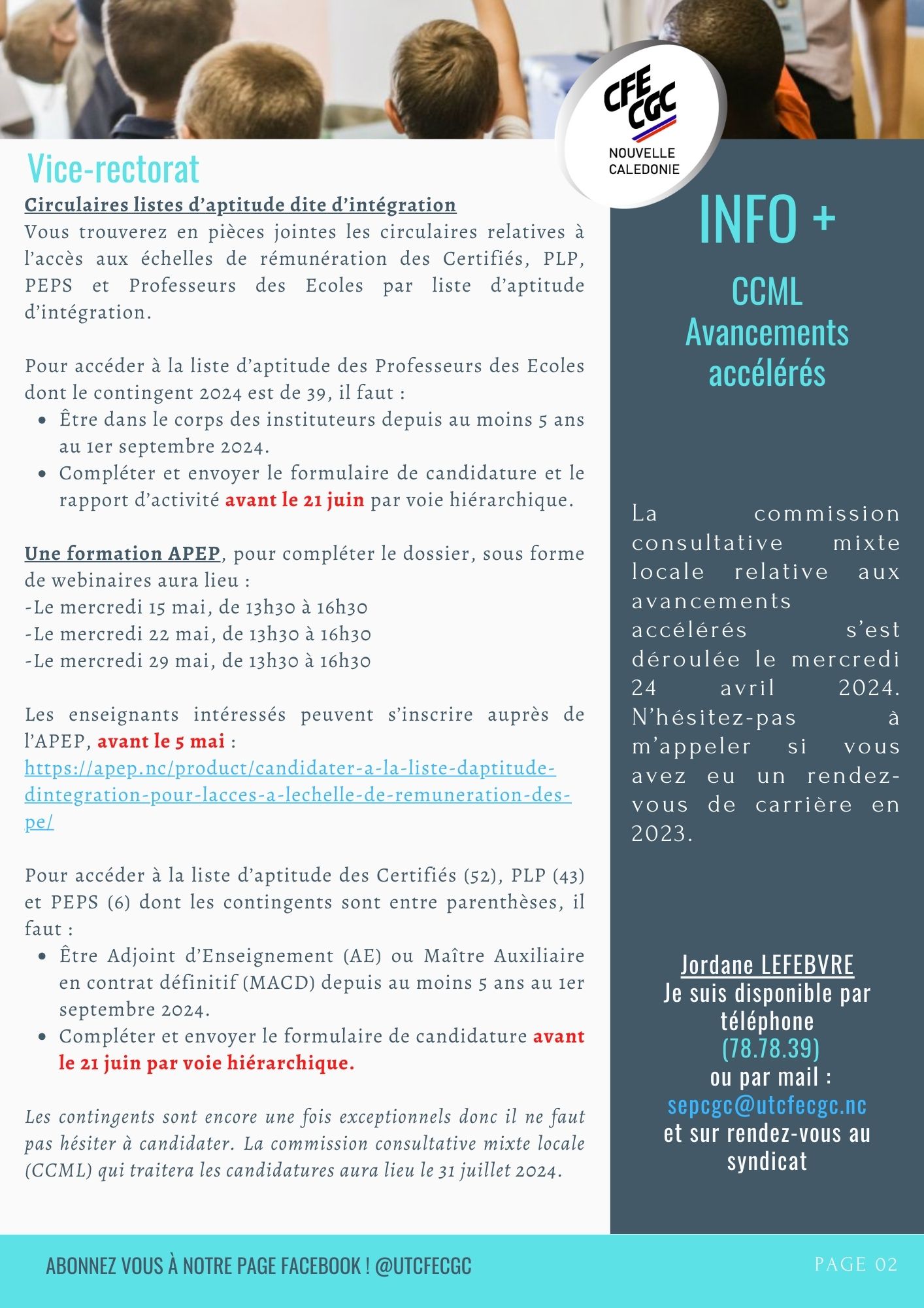 Newsletter Avril/Mai 2024 – Enseignement privé | UT CFE-CGC Nouvelle-Calédonie
