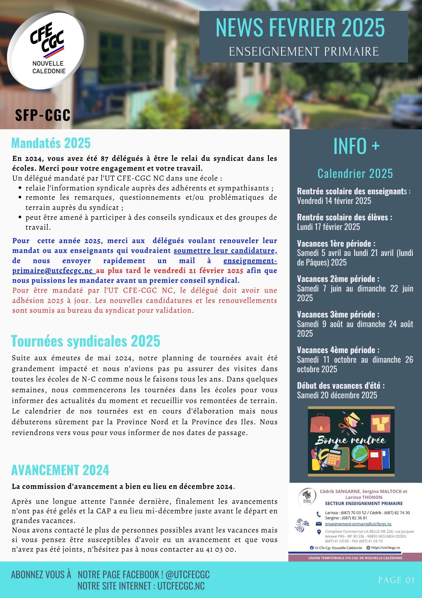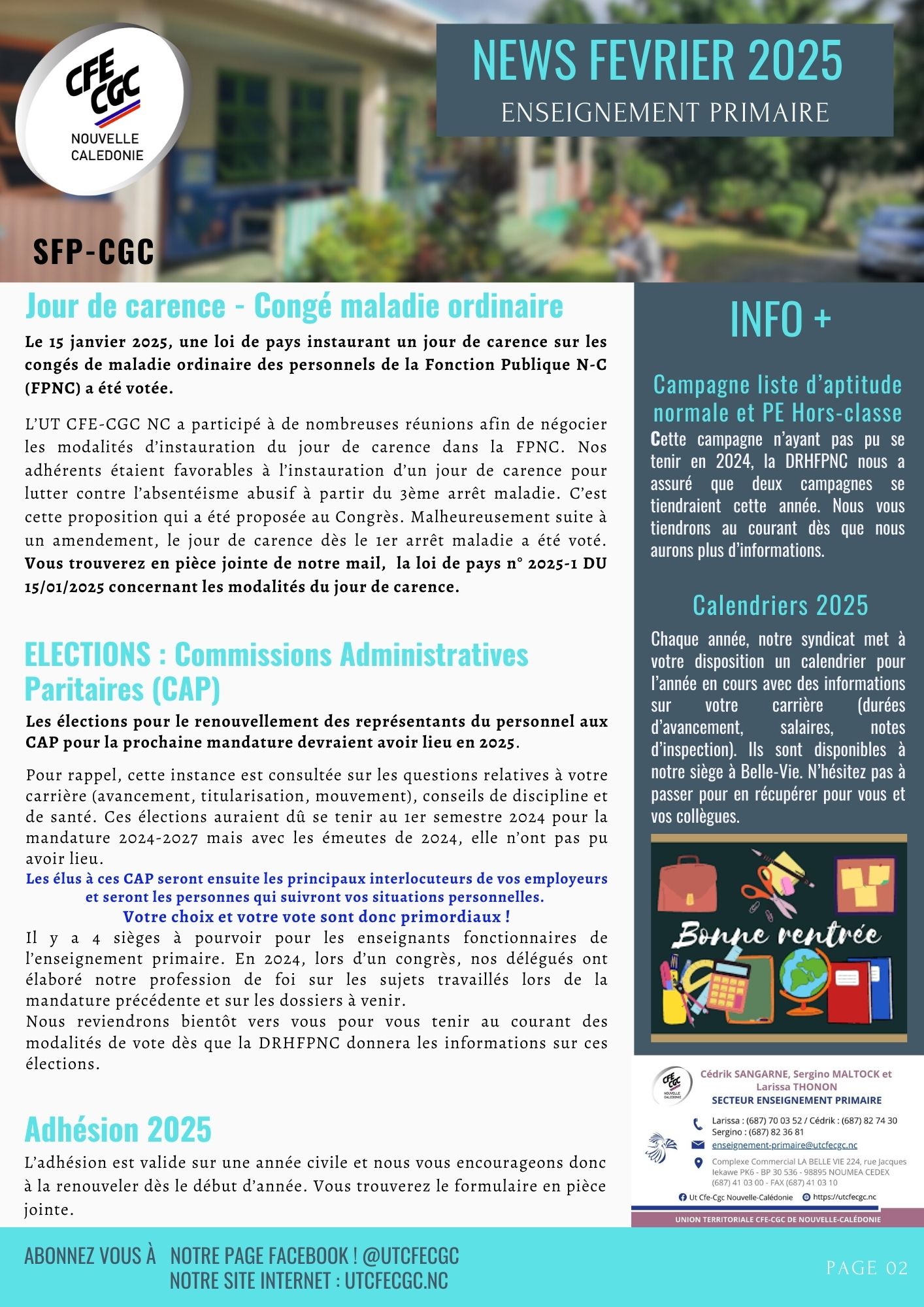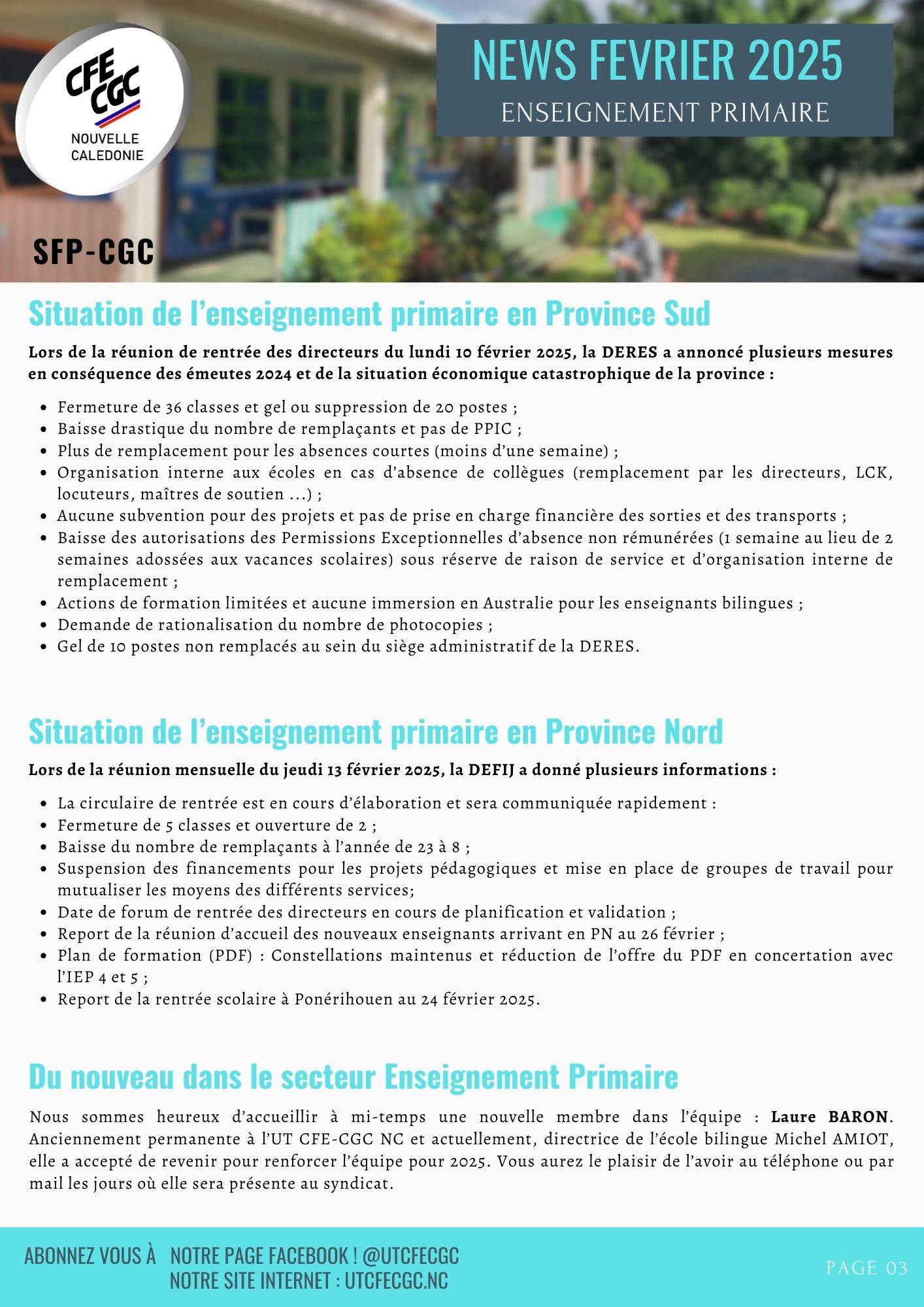 Newsletter Février 2025 – Enseignement Primaire | UT CFE-CGC Nouvelle-Calédonie